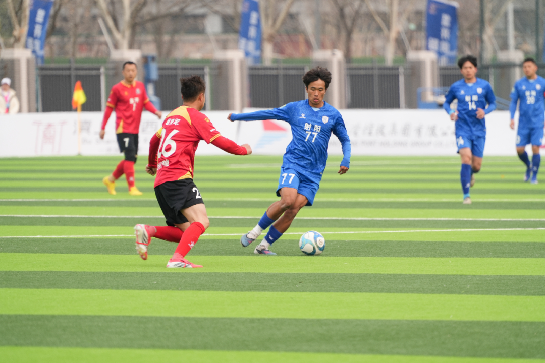 比赛伊始,射阳队迅速进入竞技状态,延续首轮良好势头。球队中场组织有序,整体配合流畅默契,通过积极跑动与合理传导掌控比赛节奏,边路与中路轮番发起攻势,队员们敢打敢拼,不断向对方禁区发起冲击,与盐城经开区队展开激烈攻防较量。