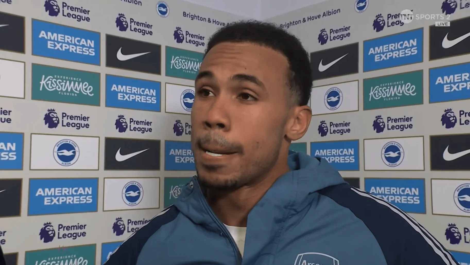 虎扑03月05日讯 英超第29轮结束多场比赛,阿森纳1-0战胜布莱顿,曼城2-2遭森林逼平。阿森纳以67分领跑,曼城60分第二。赛后,阿森纳后卫加布里埃尔接受了媒体TNT的采访。